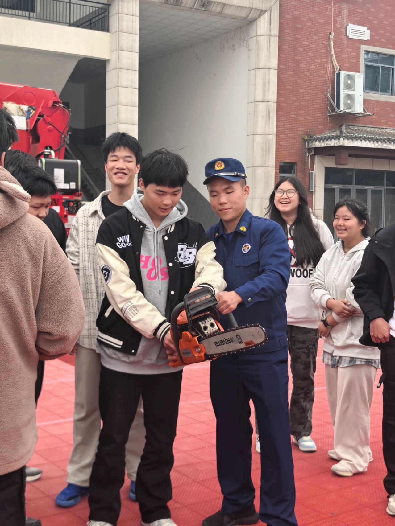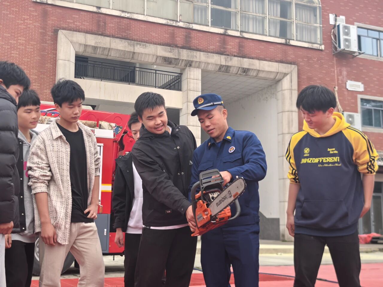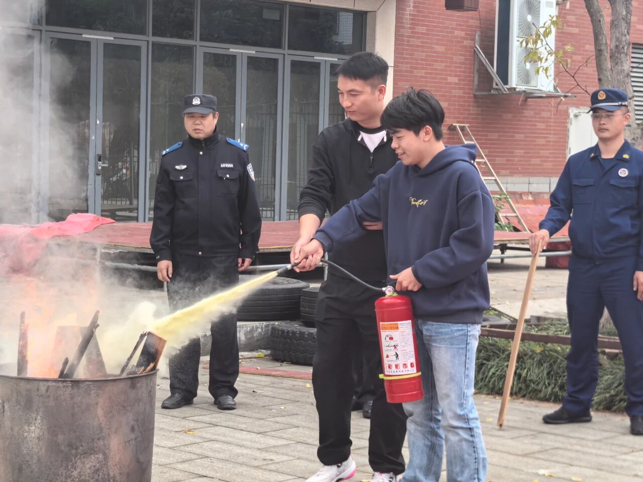 随后,开福区消防救援大队星月消防站消防员结合校园火灾特点,为师生们带来了生动实用的消防安全知识讲解。消防员用通俗易懂的语言,详细介绍火灾初期扑救方法、灭火器正确使用方法及火场逃生自救技巧,重点强调日常校园防火的注意事项,如不私拉乱接电线、正确使用电器设备等。在实操环节,教官现场示范了灭火器“提、拔、握、压”的使用要领,并邀请学生代表亲自上手操作,让大家在实践中掌握灭火技能。