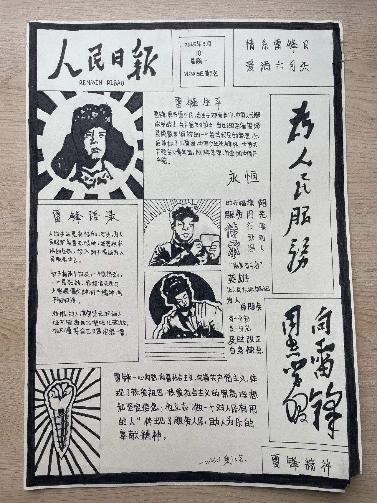为了弘扬雷锋精神,传承中华民族的传统美德,营造积极向上、乐于助人的校园文化氛围。2025年3月3日至3月31日期间,我校组织开展了一系列丰富多彩的雷锋月主题活动,其中包括党建带团建志愿服务活动、主题班会以及主题手抄报展示等。