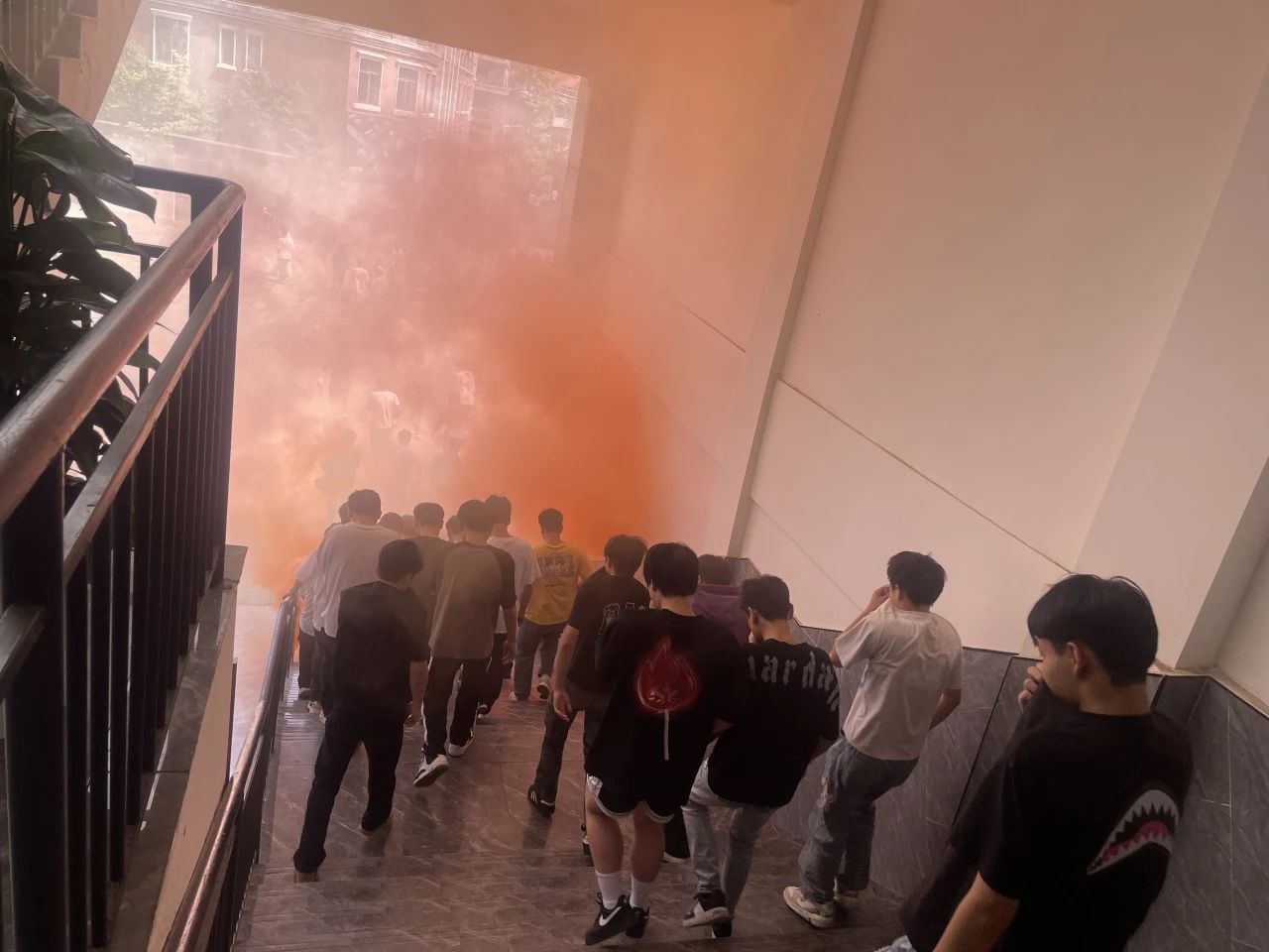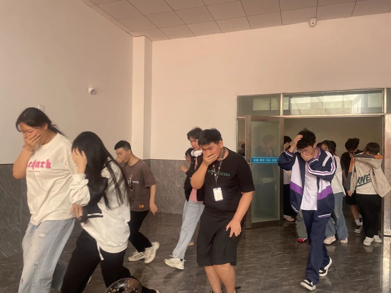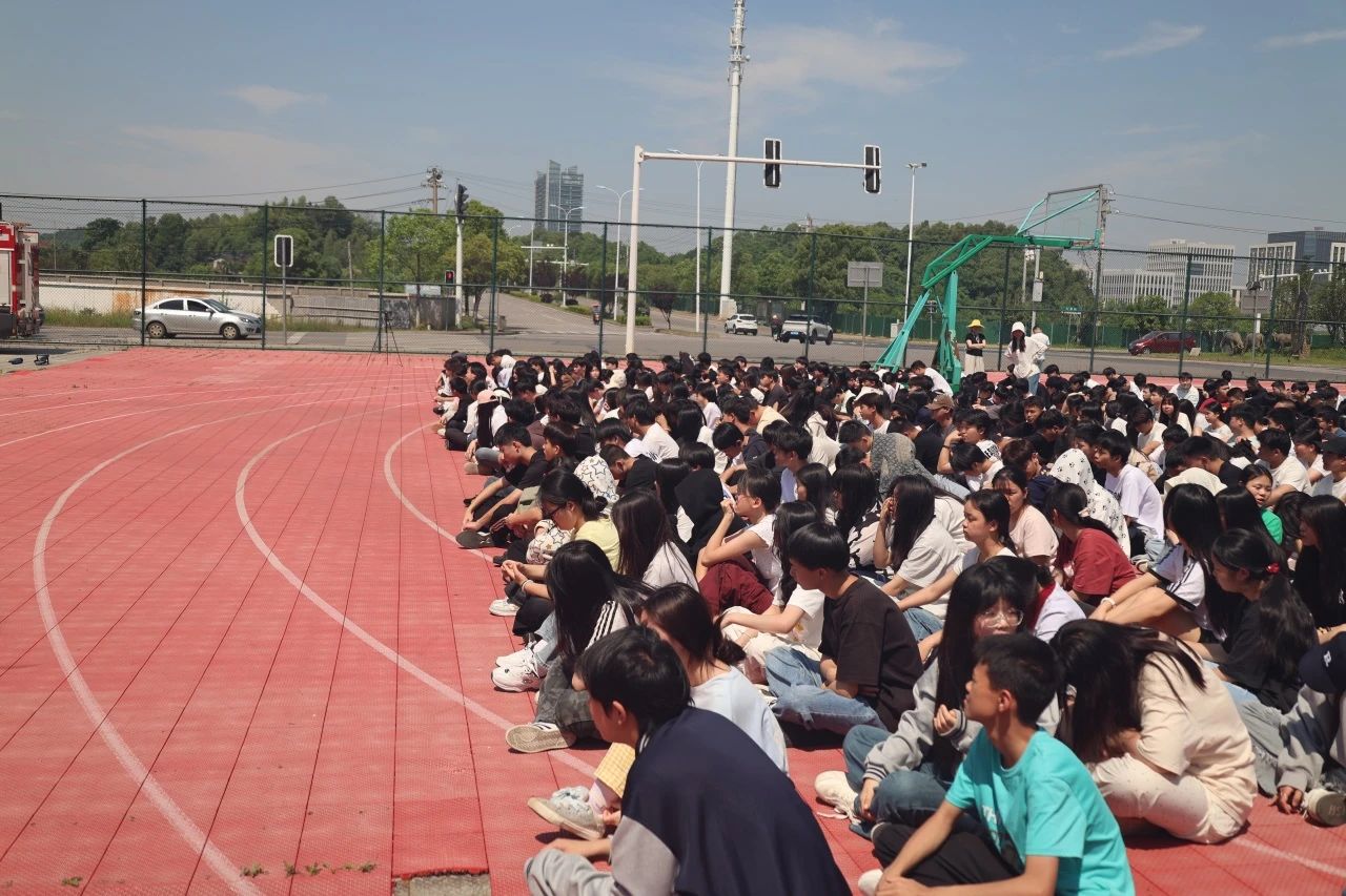 在各楼层“消防疏散员”的全程督导下,全体人员严格遵循“避浓烟、走通道、不推挤”原则,迅速完成全员疏散,全体师生全部到达田径场指定集合地。