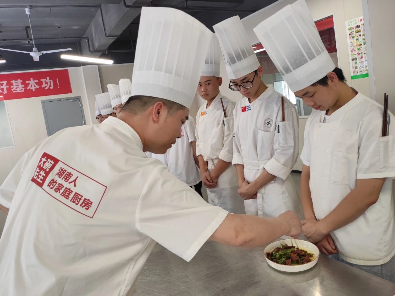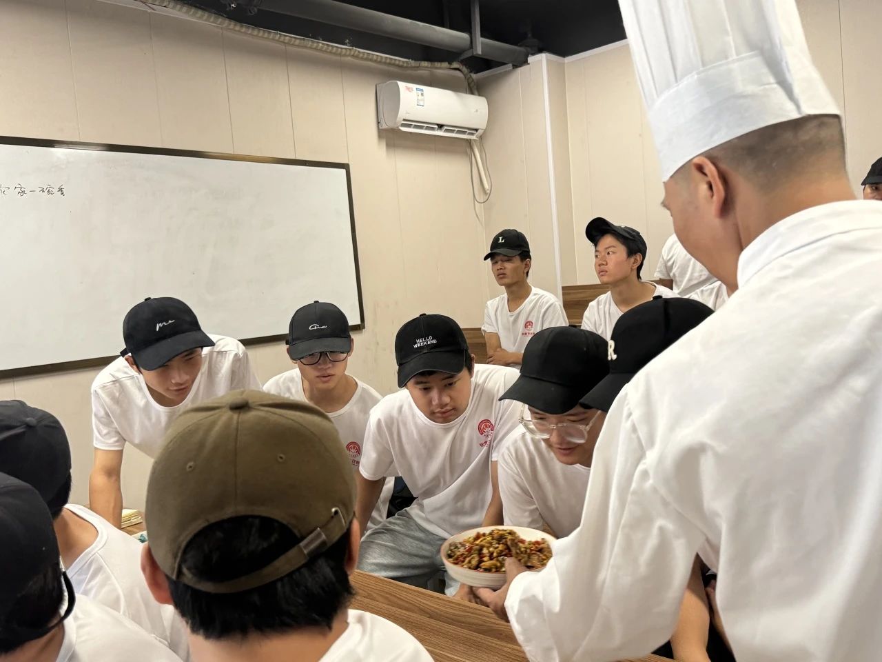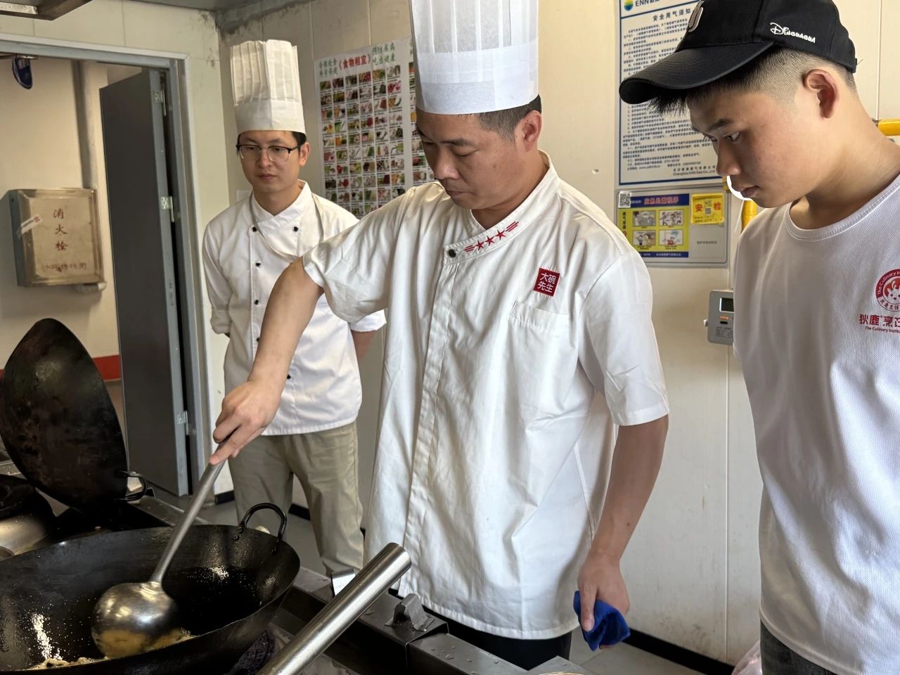接下来两天,同学们还将与大碗先生多位行政总厨深入学习拿手菜。通过理论讲解、实操示范与现场指导,同学们不仅能掌握实用技能,还能深入了解市场需求。当天活动最后,陈雄总厨表示我校是他见过的学生素质素养和技能优势非常明显的学校,对我校烹饪学生表示了高度认可。
