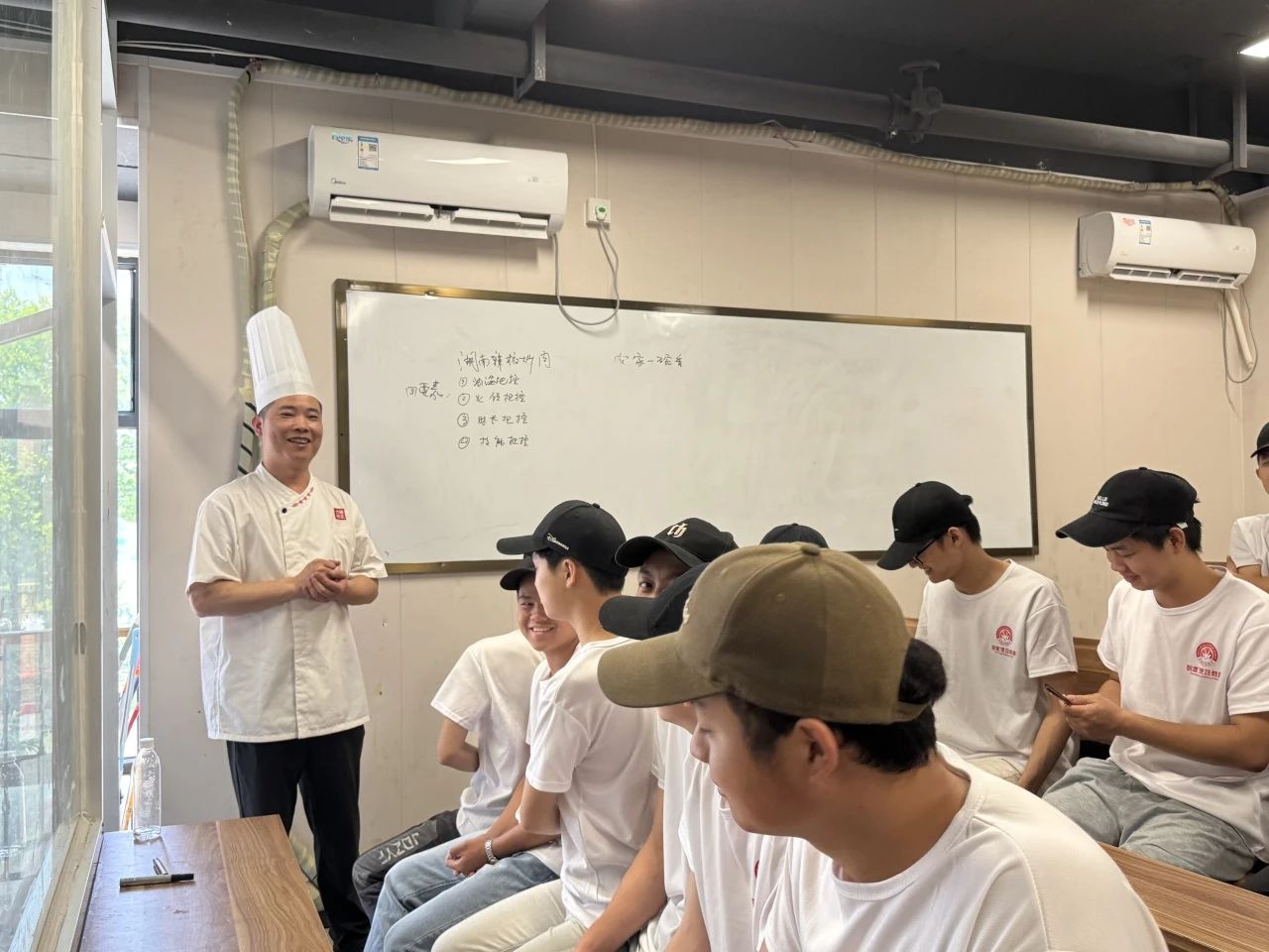 随后,陈雄总厨走进课堂,面对面为学生们讲解并示范了湖南辣椒炒肉和农家一碗香两道流行菜品的制作流程和技巧。他强调,烹饪的功底需要长期积累,油温、火候、时长和技能四个要素的把控是关键。原材料的选择和切割技巧也至关重要,直接影响菜品的口感和成色。